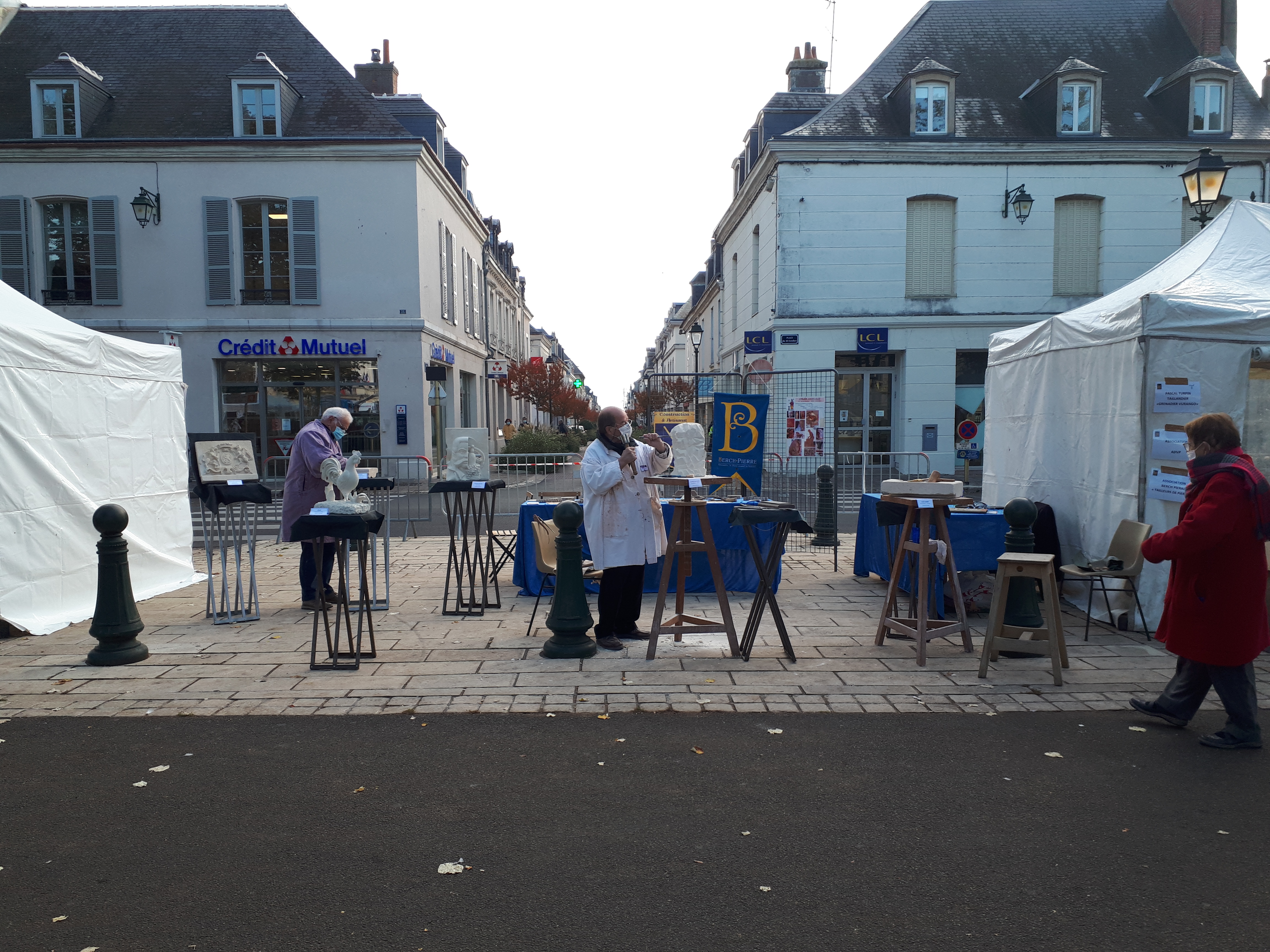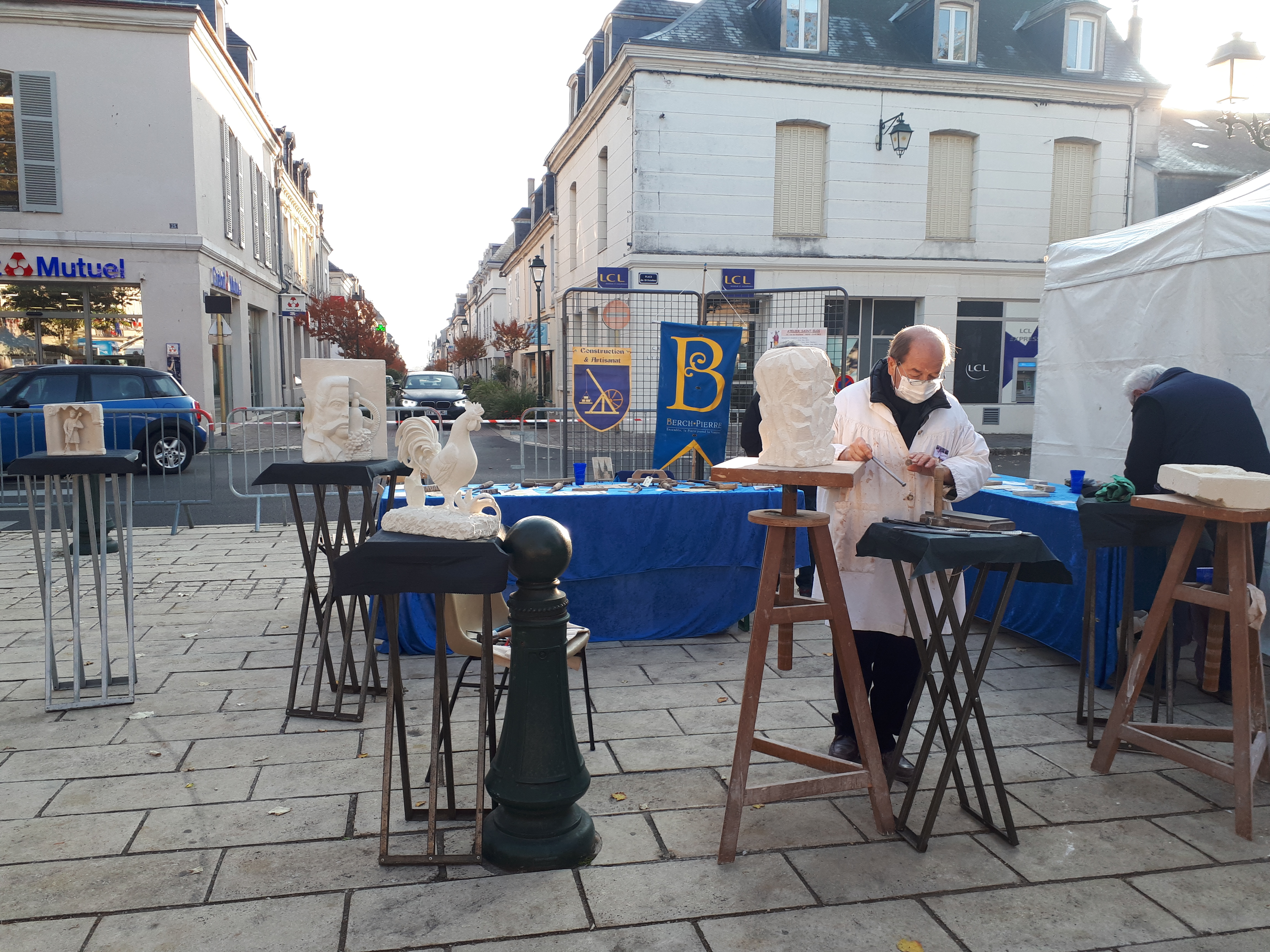 Ce samedi 17 et ce dimanche 18 octobre, l’association a participé au marché d’arts et d’histoire pour l’anniversaire de la bataille de Châteaudun pendant la guerre de 1870. Face à la fontaine du 18 octobre, Pierre et Martial ont réalisé des démonstrations de sculpture, pendant que Camille, Guenièvre et Quentin ont présenté l’outillage traditionnel du tailleur de pierre.