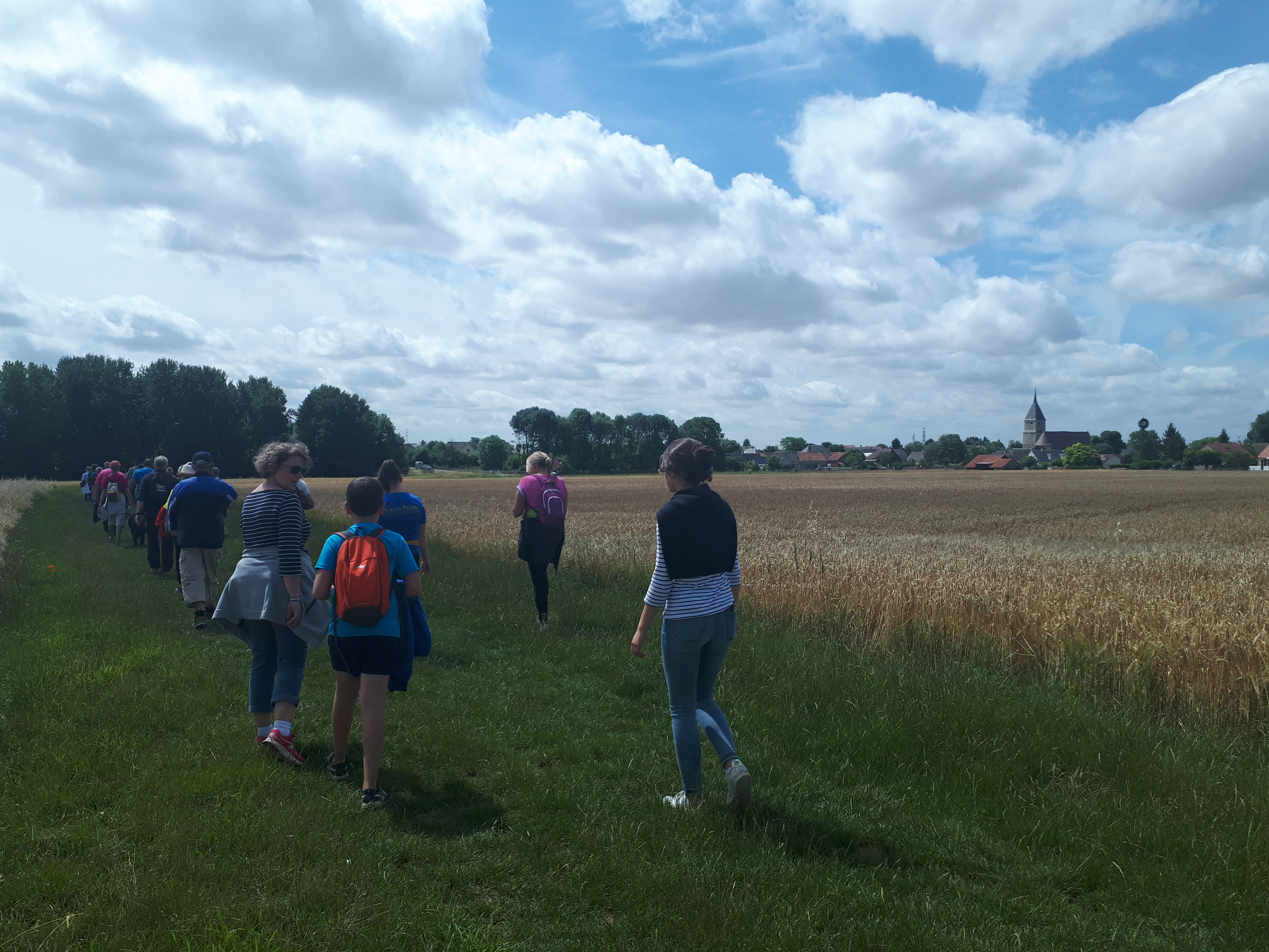 Pour sa 10e édition, une quarantaine de personnes s’est regroupée devant l’église de Berchères-les-Pierres. La marche fut ouverte par Michel qui portait fièrement l’étendard de la Berchéroise. Petits et grands l’ont suivi, ainsi que nos amis canins !