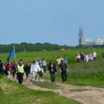 Nous avons repris la marche du huitième centenaire de la construction de la Cathédrale en empruntant le chemin suivi par les carriers de la zone d’extraction de la pierre jusqu’au parvis de Notre Dame de Chartres.